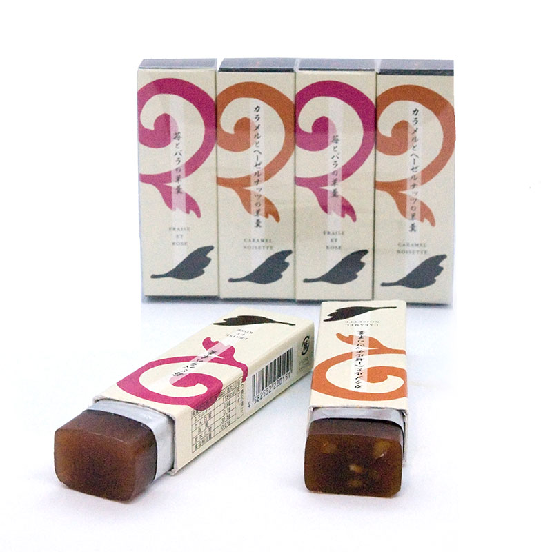 『苺とバラの羊羹/カラメルとヘーゼルナッツの羊羹』 各2本入り4本セット