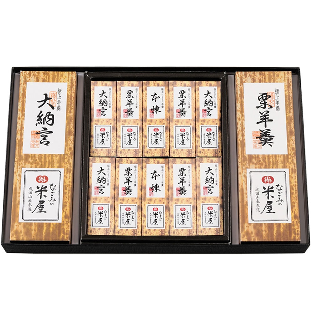 米屋の創業は明治三十二年。もともと成田山の門前町で米穀を扱う米屋(こめや)でしたが、創業者諸岡長蔵が成田山新勝寺の精進料理である「栗羹(くりかん)」にヒントを得て、地元の芝栗を煉り込んだ「栗羊羹」を創製し、成田山土産として販売したことが始まりです。