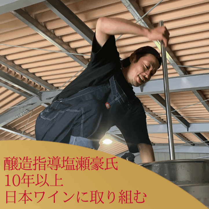 ワインの醸造指導は長野県安曇野LeMilieuの塩瀬豪氏。 10数年にわたり国内外でワイン醸造に従事し、日本ワインコンクール等、数々の賞を受賞。 2018年より自身のワイナリーを立ち上げ、自社ワイン醸造のみならず、国内を飛び回り醸造指導をする若き醸造家