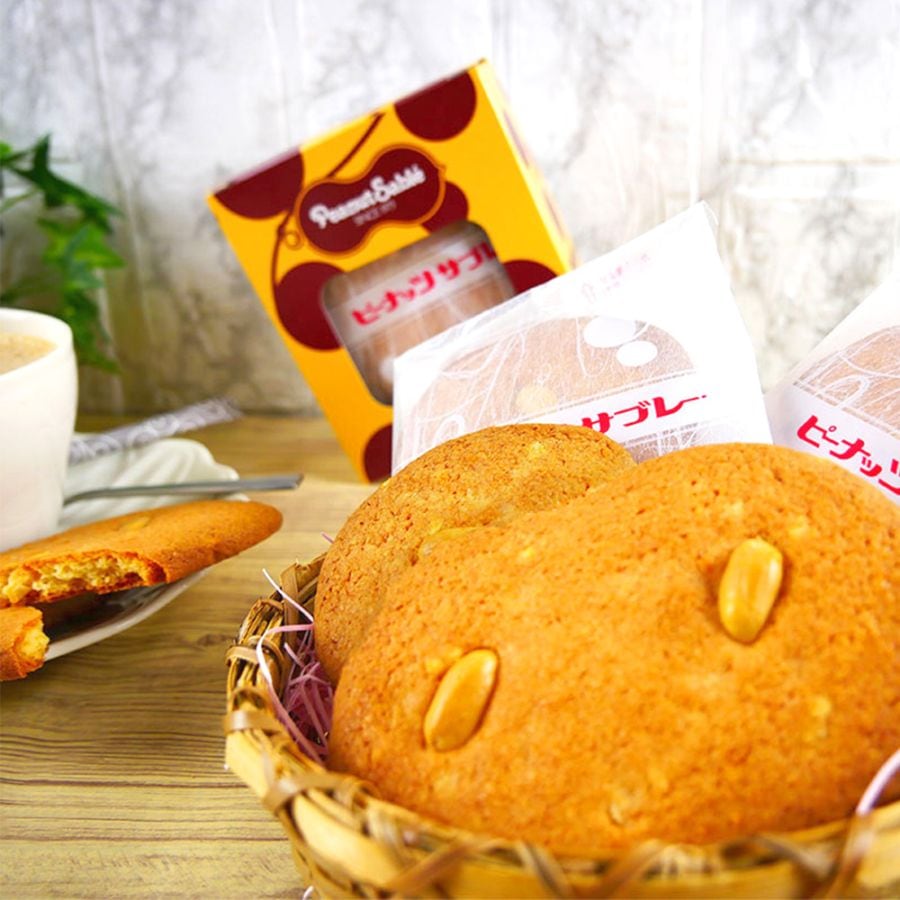 ピーナッツは、爽やかな風と夕映えの美しい空をもつ千葉の大地で育ちました。 小さなひと粒に、はじける元気とあたたかさがたっぷり。 そんなピーナッツを贅沢に使った御菓子がピーナッツサブレーです。 一枚食べると笑顔がこぼれる。二枚食べると元気いっぱい!