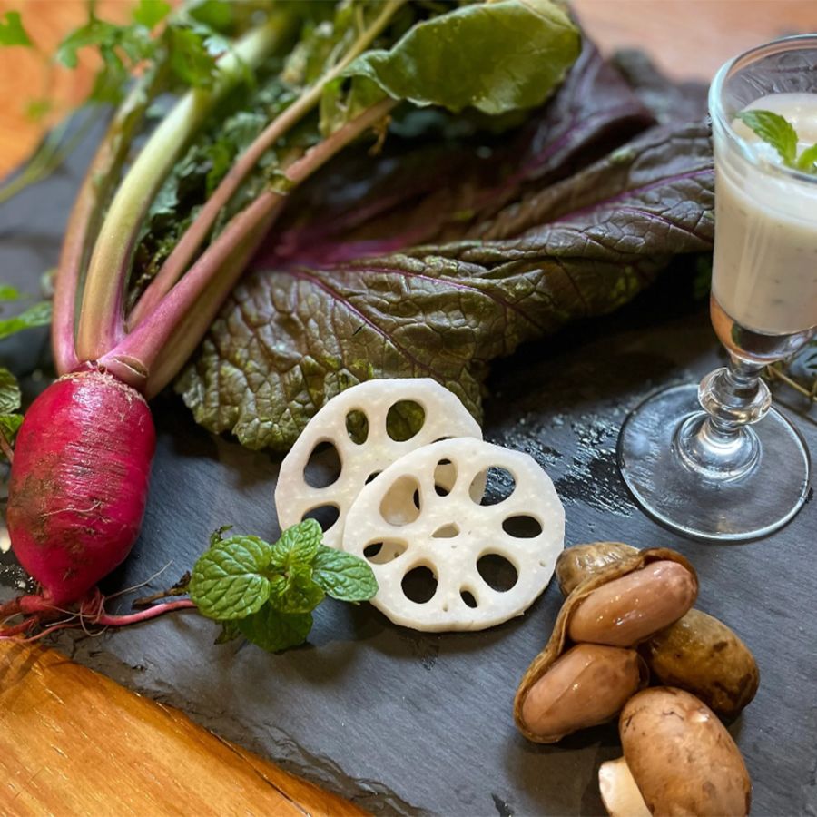 質の良い新鮮な材料にこだわり、地元農家や生産者から食材を仕入れ、添加物をおさえ、自然の力を引き出す【医食同源】の考え方にそって料理をお届けします。
